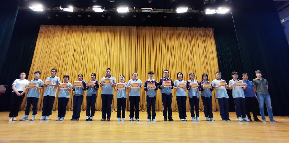 首先,大屏幕滚动展示了“年级之星”和“进步之星”名单,胡景月主任和方云主任依次宣读了“年级菁英”和“年级翘楚”名单,各班受表彰代表上台领奖并合影留念。
