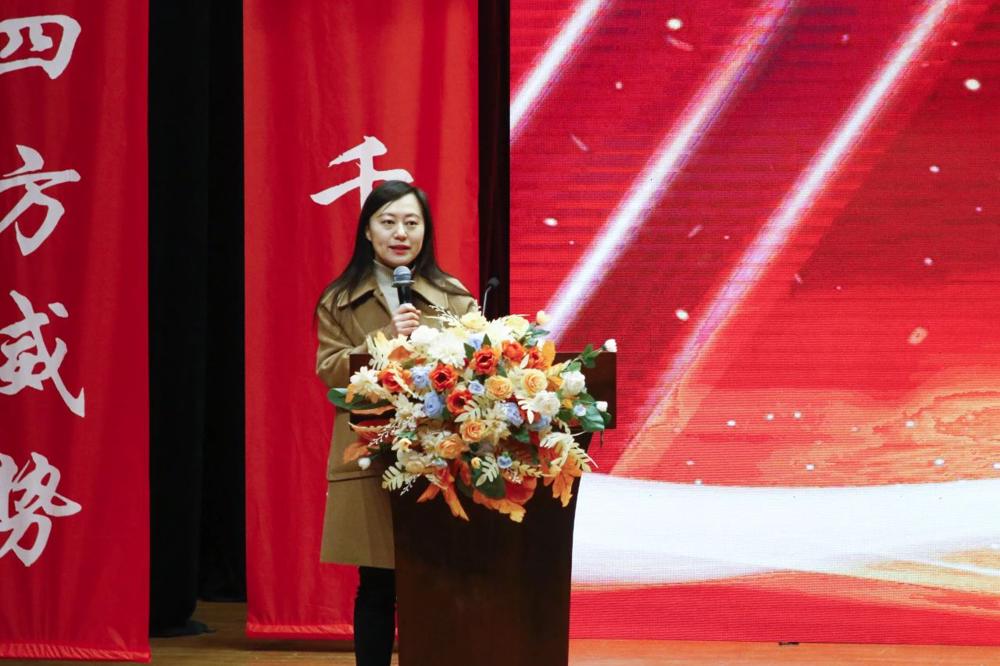 教师代表周粲老师用“遇见、难忘、勇敢、100”这四个关键词,分享了自己与2024届高三在一起难忘的细节,并送上了自己最真挚的祝福:“100天的安逸必然会留下一辈子的遗憾,而100天的汗水必定能换来一生的幸福。让我们一起加油,冲刺高考,无悔青春,不留遗憾!”