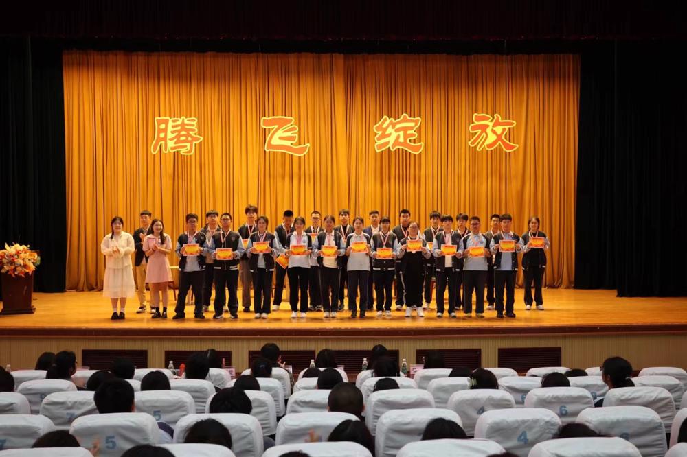 本次会议由高三年级部李发志主任主持。大会伊始,李主任对在二模中脱颖而出的同学们进行了表彰。这些同学在学业上取得了显著的成绩,是全校同学学习的榜样。学校还特别邀请了就读于南京大学的胡北辰等往届毕业生,为获奖同学颁奖,这不仅是对他们过去努力的认可,也是对未来努力的期许。
