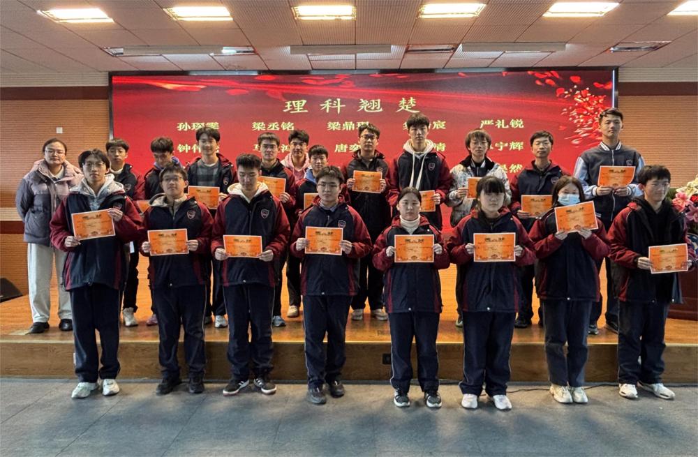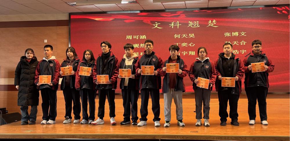 首先,大屏幕播放了“文科优秀”和“理科优秀”名单,接着,刘恒主任依次宣读了“年级菁英”和“年级翘楚”名单,特别宣读了“总分探花”“总分榜眼”和“总分状元”名单。名单宣读完毕后,受表彰的同学依次上台领奖,并与颁奖老师合影留念。