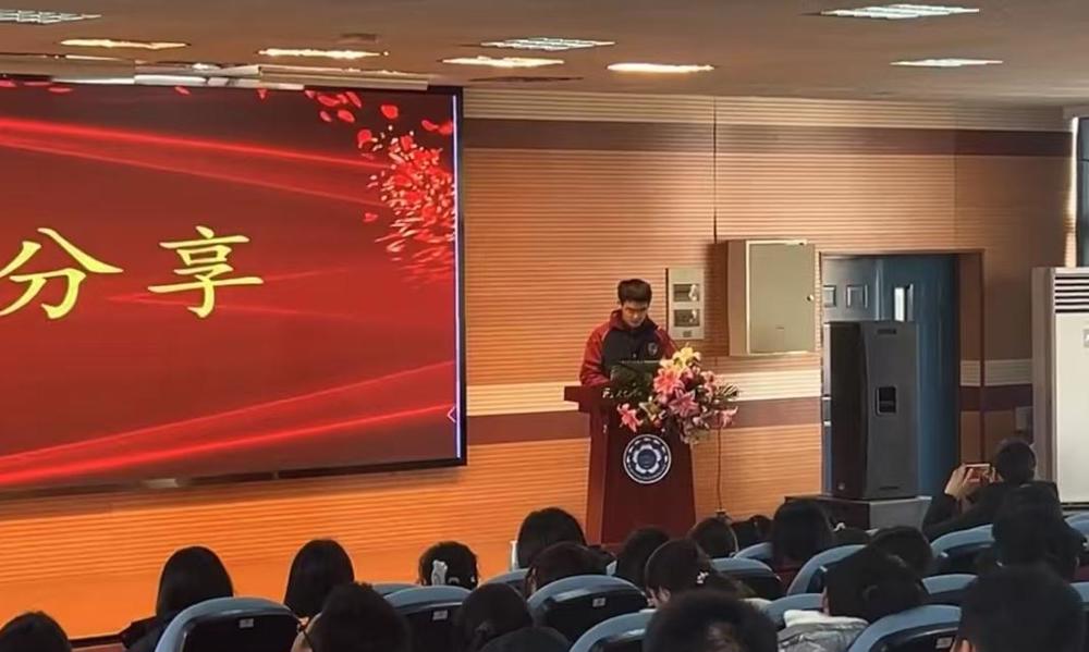 优秀学生代表高三(6)班严礼锐同学上台发言,围绕科学规划学习时间、合理安排课堂学习和课下练习、永不言弃的精神等方面分享经验,台下同学受益良多。