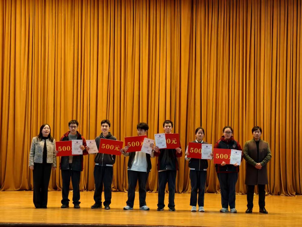 首先,大屏幕播放了“进步之星”和“年级之星”名单,接着,潘新宇副主任和胡景月主任依次宣读了“年级菁英”和“年级翘楚”名单,尤丽莉主任、方云主任和王琴副校长依次宣读了“校长特别奖”中的 “班级状元”、“单科状元”、“年级理科2-5名”、“年级文科2-3名”和“年级文理状元”名单。名单宣读完毕后,受表彰的同学依次上台领奖并合影留念。