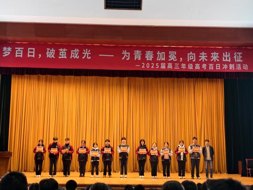 3月28日,高三年级部在学术会堂召开了2024-2025学年度第二学期一模调研学生表彰大会。本次表彰大会由赵兰妹老师主持,王琴副校长、学生工作处尤丽莉主任、课程教学处胡景月主任、高三年级部方云主任、潘新宇副主任出席本次大会。