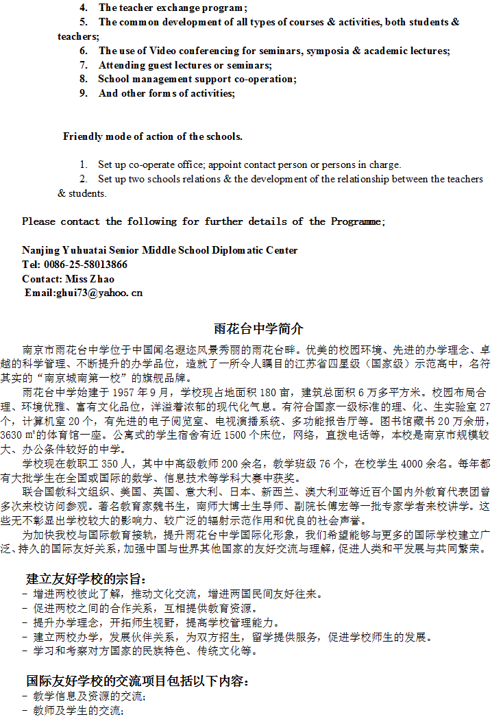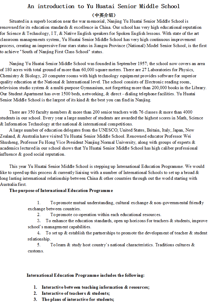 雨花台中学2009年招生说明