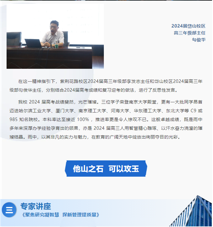 聚力科学教育,共谋特色发展 | 雨花台中学2024年暑期全体教师研训(五):雨花台中学2024、2025届高三教育教学研讨会
