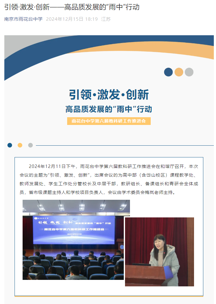 引领·激发·创新——高品质发展的“雨中”行动 雨花台中学第六届教科研工作推进会
