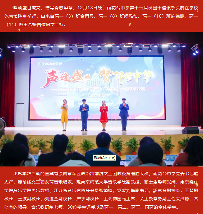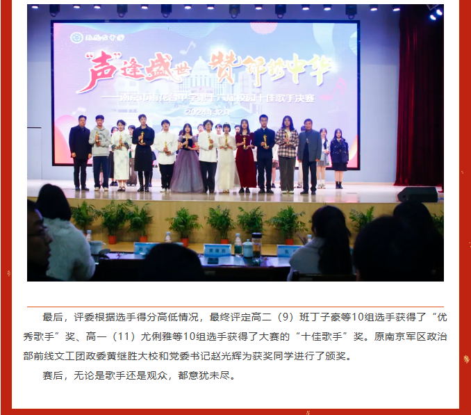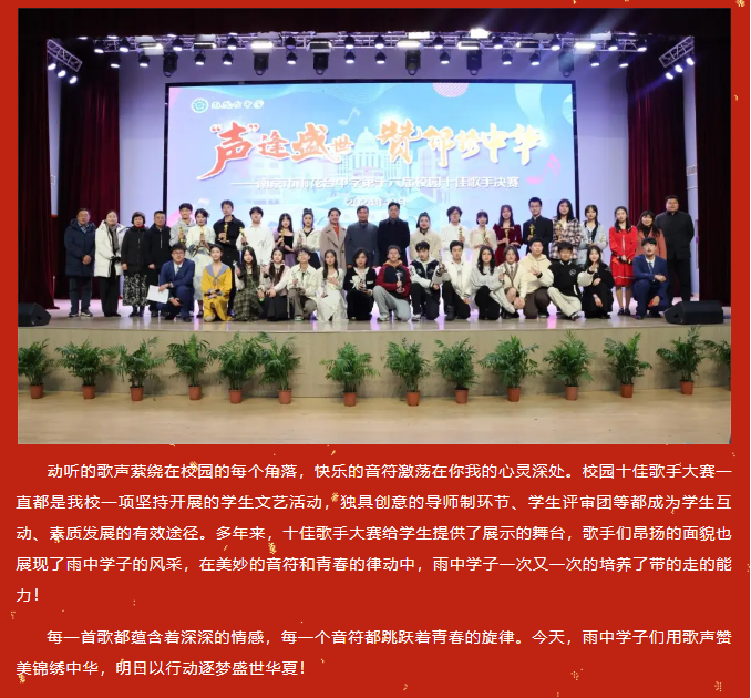 “声”逢盛世,赞锦绣中华——雨花台中学第十六届校园十佳歌手决赛