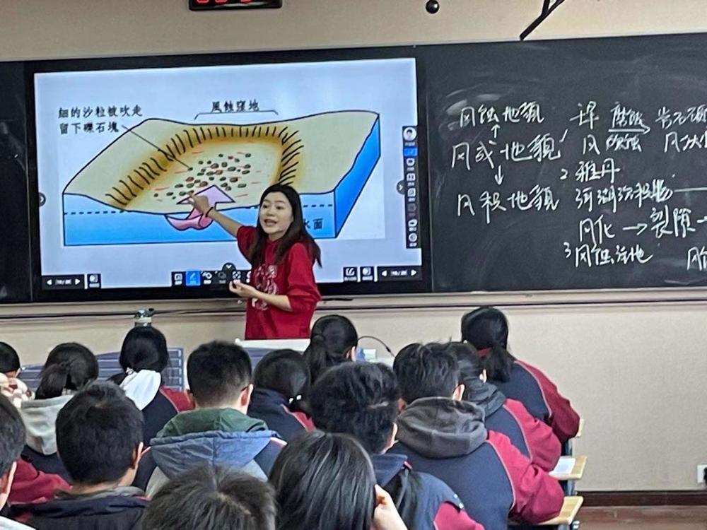 首先登场的是董静老师,她的课题为《风沙地貌》。课程一开始,董老师就运用了航拍中国里的雅丹沙丘进行导入,充分激发了同学们的学习兴趣。第二位上场的是刘倩老师,她的课题为《塞舌尔的发展模式可以复制吗?》,刘老师充分的利用实例素材,充分的体现了因地制宜的发展模式。最后登场的是来自雨中岱山的张晓涵老师,她的课题为《常见的地貌类型》,张老师运用诗仙李白的诗句,从长江源头一路向东,带领学生们充分认识了河流地貌。