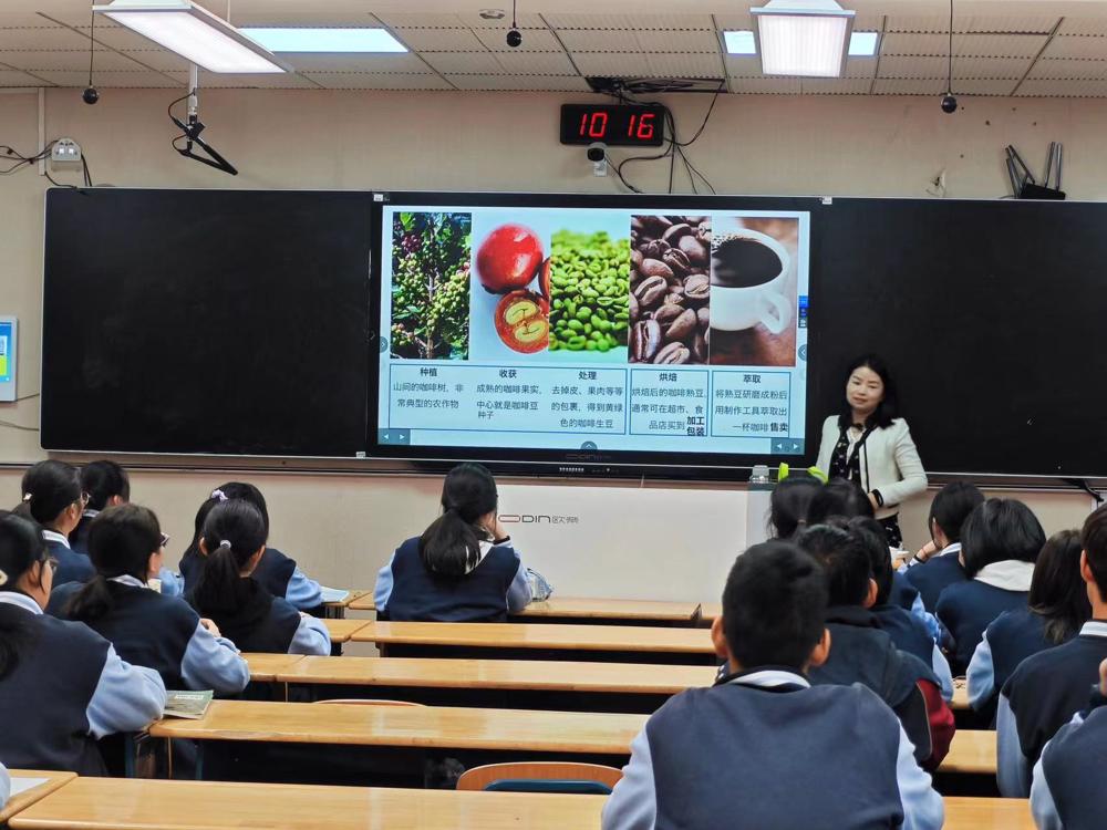 接着,向莉老师通过咖啡豆到咖啡的生产流程,将必修一第三章产业区位因素中的农业、工业、服务业区委因素串联在一条产业链中。让同学们充分的掌握了各产业的区委要素。