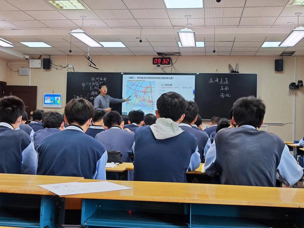 首先,戴静伟老师抓住了欧洲西部温带海洋性气候显著的特点,将欧洲西部的位置、地形、洋流、水文等自然要素串联起来,带领同学们学习掌握了欧洲西部的自然地理特征。