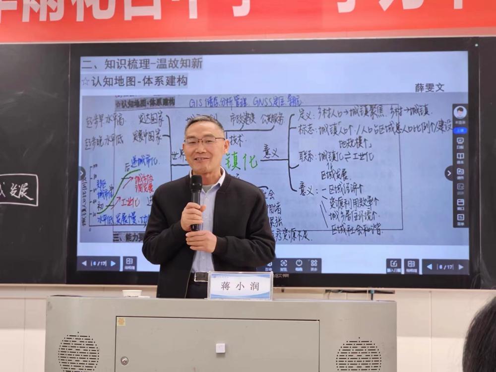 接下来,地理特级教师蒋小润老师给我们带来了“学为中心”的微讲座,他强调教师在教学时要重视对学生地理思维的培养,不仅要重视结论的生成,更要重视思维的过程;第二要重视地理中的尺度观念,让学生对同一种事物从不同的尺度去研究,比如“城镇化”这节课中“交通”这个要素,从大的尺度来看,区域交通会越来越便利,但是从小尺度来看,城市中的道路可能会越来越拥堵;最后要培养学生回答问题时,注意事实和观点问题,例如城镇化进程的快慢是建立在已划定的三个阶段这样的标准下,于是不同时间,城市化的进程才有相对的快慢。