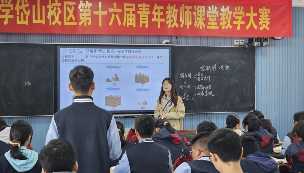 2025年10月24日,雨花台中学第十六届青年教师课堂教学大赛在岱山校区隆重举行。本届大赛以“基于AI的融创课堂”为主题,聚焦信息技术与学科教学的深度融合,旨在探索智能化教学新模式,提升青年教师创新实践能力。来自地理学科的孙文欣、张晓涵、宿奥宇三位青年教师以《喀斯特地貌》为课题展开精彩角逐,为师生呈现了一场科技与教育交融的视听盛宴。