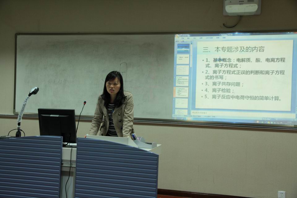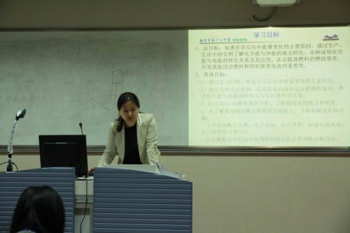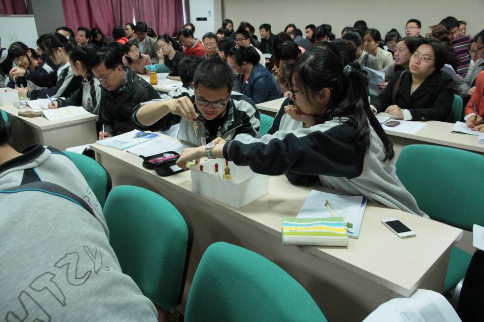 2014年4月15日,南京市高一,高二化学老师来到雨花台中学进行市教研活动,并就深度研课做了进一步探讨。活动中,我校焦雪红老师开设了《最简单的有机化合物——甲烷》一课。焦老师语言亲切生动,教学环节丝丝入扣,课堂中结合甲烷模型的制作和搭建,调动学生动手动脑投身到课堂教学情境中,充分发挥了学生的积极性。焦老师改进的甲烷的取代反应实验,现象更加明显,取得了同行的一致好评。来自扬子中学的李玲老师开设了《化学反应限度》一课,课堂设计新颖,以探究形式层层深入,步步剖析,学生的自主学习和思考得到了充分的体现。课后梁晓华老师就焦老师的备课思路进行了剖析,李玲老师也就自己的课堂设计进行了阐述,使同行们更好的体会到了两位老师的备课意图和教学理念。 在听课评课之后,老师们就化学深度研课活动进行探讨。参加深度研课的七所学校派出了自己的代表,就近阶段本校研究的成果、想法、建议和同行们进行了沟通。 最后,南京市化学教研员刘江田老师对本次活动进行了总结,并对全体教师提出了建议,他的讲话高屋建瓴,对我们的教学研究起到了非常好的指导作用。刘老师首先指出我们现在的教研活动是以课题的研究引领、带动全市教研活动和校本教研,要进行系统的设计,我们现在就是以精品课程和深度研课两个课题展开高中化学教研活动的。还指出一节课的目标设定需要考虑课标,教材,评价,学生四个方面,教师要进行深度思考,改变教学理念,让学生高效地、愉快地学习。要做到这一点,需要教师在真实的课堂情景中发现问题,通过学生小组讨论、观察实验等真实的学习活动解决问题,再通过老师的巡导,抽样,对话评测学习效果。真实的课堂必然会产生真实的能力,必然会进一步提升学生的素养,能力,技巧和方法。
