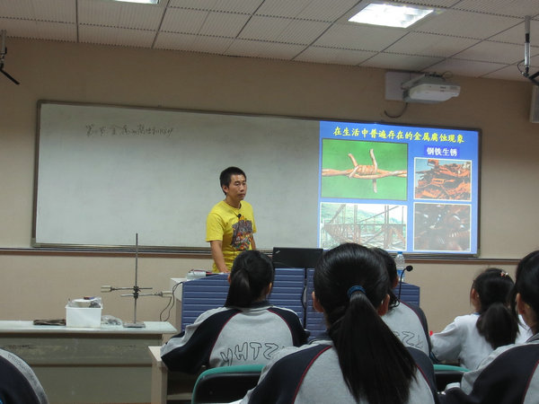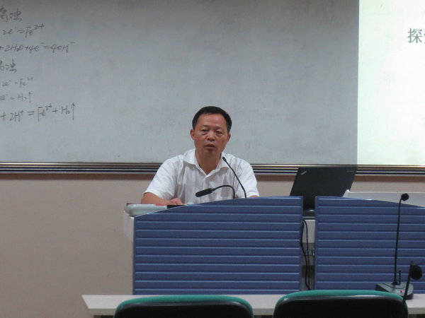 首先,马春生老师对上学期的南京市期末考试作了细致而客观分析,对新学期高一的化学教学起了重要的借鉴作用。然后,雨花台中学方云老师开设了一堂生动而有趣的化学课——《金属的腐蚀和防护》。课中方老师作了铁粉燃烧的实验,精彩的现象激发了学生的学习兴趣;设计的课前探究实验将化学的学习探究线路延伸到了学生的课余生活中;吸氧腐蚀的数字化实验更是直观展示了现代科技在教学中的独特魅力。接下来雨花台中学的焦雪红、梁晓华、徐雯馥三位老师就《化学与生活》第三章的其它三节内容进行了说课展示,三位老师课堂内容充实而务实,表达亲切而生动,展示了非常优秀的教学基本功。邱荣老师对《化学与生活》第三章的教材进行了分析,并向老师们汇报了教研组关于精品课程的研究进程,十三中的钱海滨老师(特级)对雨花台中学的活动给予了高度的评价,并充分肯定了雨花台中学对《精品课程》课题所做的贡献,同时给予了参与上课和说课的四位年轻教师高度的褒扬。