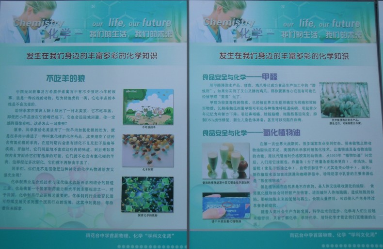 2012年3月12-16日在我校初中部开始了化学活动周:针对初中学生尤其是初三和初二学生展开。3月13日 初二:讲座-化学与生活——引起初二学生对化学学科的好奇之心,用实验展现化学之美,使学生充满对化学学习的期待。