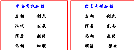 从而,得出中国封建时期“中央集权不断发展,君主专制不断加强”的历史规律。一定程度上培养了学生自觉不自觉地找出历史规律的能力。