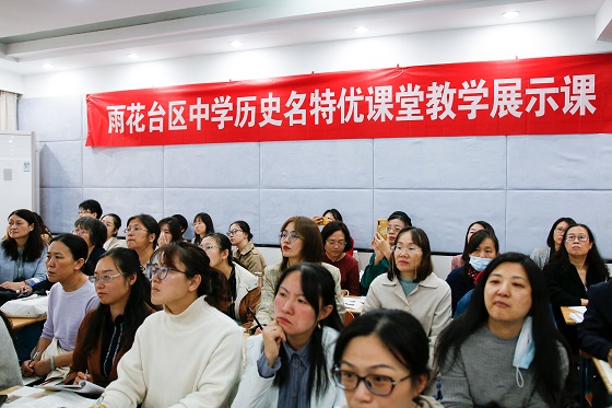 研读新课标,立足新高考,钻研新教材,高一历史备课组孙进老师,高三历史备课组马跃美老师和诸雯莉老师在全市同仁面前展示了雨中历史教师在新课改形势下课堂教学的崭新风采。孙进老师的课大气磅礴,生动有趣,将历史学科素养浸润到课堂的每一个细节处,润物细无声。高三马跃美老师的一轮复习课,模式完整、清晰,立足基础,关注历史学科素养的融入,高屋建瓴。诸雯莉老师的课堂,感染力、代入感强,显示了个人扎实的学科基本功,课堂中对历史核心素养诠释到位,张弛有度。听课活动结束后,鼓楼区教研员胡斌老师,十三中王东峰老师,九中陈荣老师和南航附中的顾伏林老师作为专家和教师代表,分别在各自的年级对相关授课老师的课堂教学予以点评,雨中高中历史课堂教学,再次受到全市同仁的极高肯定!
