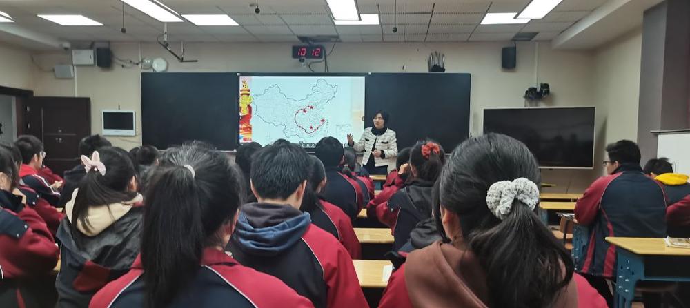 来平老师开设的高三一轮复习课《重访红色足迹,赓续红色精神》。课堂形式新颖,充分展现了来老师基于学生学习而设计教学评价的一贯风采,学生自主上台展示小组自学成果,由“红船精神”“井冈山精神”“长征精神”“延安精神”贯穿始终,来老师及时对于学生的展示内容给予详实的补充和精准的点评。整节课体系完备又创新大胆不乏巧思,其中学生们组织的《米缸的故事》小品演出使在座师生深刻感受着中国共产党和中国人民成长壮大的风雨沧桑,也更深刻地理解了中国共产党带领中国人民弘扬光荣传统、赓续红色血脉的革命精神。
