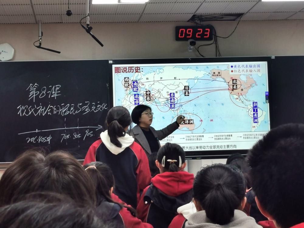 本次教研活动的研讨主题是新教材的课堂教学案编写与实践。本次活动首先由南京市大厂高级中学李龙龙老师与我校诸雯莉老师分别开设选必修三《第7课 近代殖民活动和人口的跨地域转移》和《第8课 现代社会的移民和多元文化》两节公开课。两位老师都紧贴教学案开展教学,注重以学案引领学生开展历史重难点问题的探究,充分培养学生的时空观念、史料实证和历史解释素养。教学案是高二历史选必修学习的重要学习工具,也是目前我校历史教学探索的方向。
