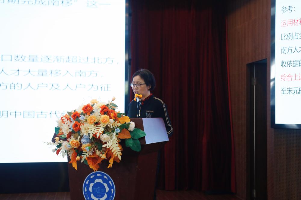 在一线教师专题讲座环节中,来自梅山高级中学的历史教研组长董丰静老师做了《上海历史等级考的题型特征及应对策略》专题讲座。上海卷中给学生搭台阶式的设问形式,大历史背景下侧重对学生历史思维的考查,给全体与会老师以深刻启发。