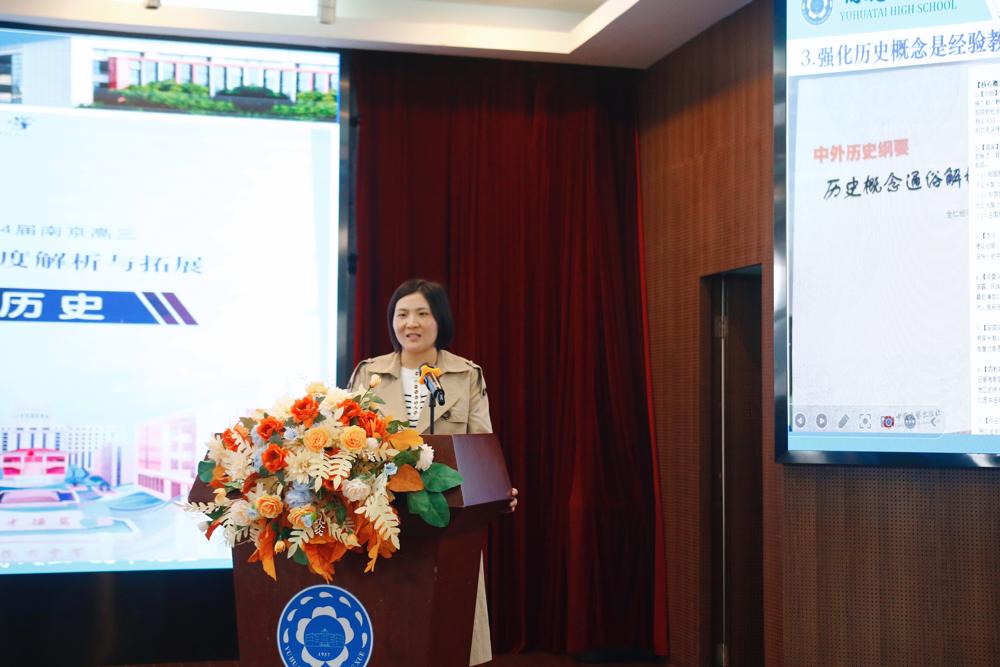 作为本次活动主办方,雨花台中学高三历史备课组的来平、马跃美两位老师做了基于日常一线教学实践的工作汇报。来老师的《例谈历史核心概念在高三二轮复习中的运用》专题讲座,从历史课程标准、新高考命题导向、历史学科素养的生成等多维度论述了历史核心概念在高三历史二轮复习教学中的必要性和可操作性。马跃美老师则从2024届高三历史备课组组长的角度做了《指向历史思维能力提升的高三历史复习实践与反思》专题讲座。马老师从高考试题命题的逻辑要求与历史学科育人目标两个方面,以丰富生动的教学实例向全市老师汇报了雨中高三历史备课组对历史思维能力提升的若干思考及在一线教学实践活动的若干探索。