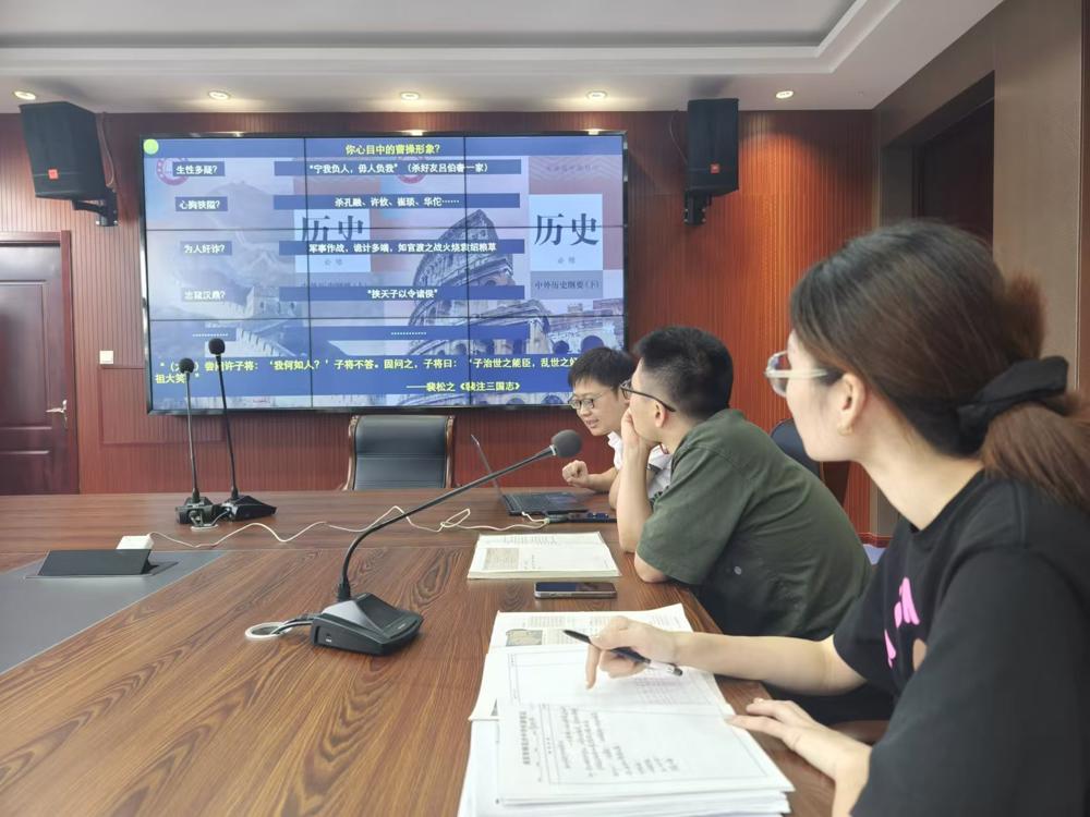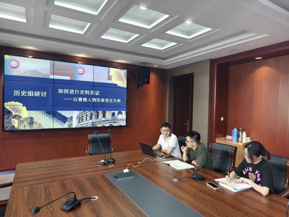 分享结束后,历史组展开激烈的讨论。张元喜老师肯定了史料互证对历史研究的意义和价值,同时指出:一,对曹操“奸雄”形象的设定未必符合学生认知,教学中应该准确解释“奸雄”的内涵;二,对《三国志》文本体现的正统观念应提供更多的证据,辅助理解;三,在叙述曹操发迹时应明确曹操庶族地主的身份,认识到庶族和世家大族的冲突也是重要线索。陈宇老师认为设问不要绝对化,人物形象是多元的,应通过材料引出人们对曹操形象的认知,不应提前预设立场。杨阳主任肯定了历史教研组研讨活动,认为教师备课应抓住转瞬即逝的想法,在日常教学中应该大胆尝试和创新,鼓励将想法落实到教学中去。他指出教研不仅仅是一场交流和讨论的活动,而是思想激荡的盛宴,只有每个人全情投入,才能发挥出教研的价值。