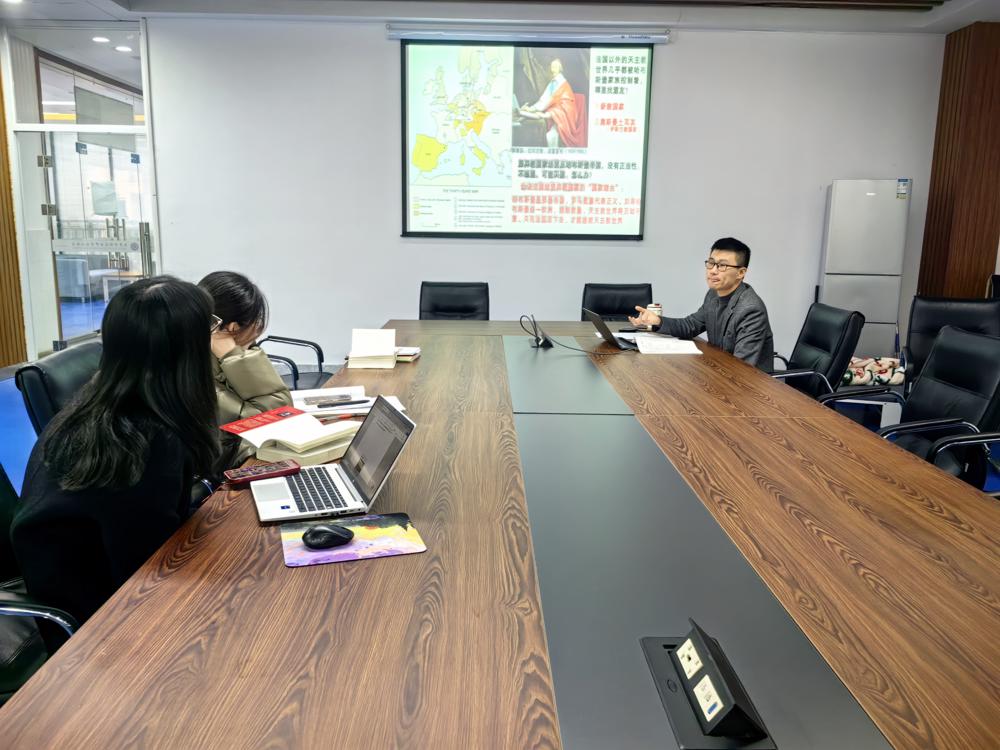 2024年12月12日上午,岱山校区历史教研组在二楼会议室开展12月份教师论坛活动。活动的分享人是张元喜老师,分享的主题是《如何用编剧思维讲好历史故事》。本次活动旨在促进历史教学方法的交流与创新,提升教学质量。