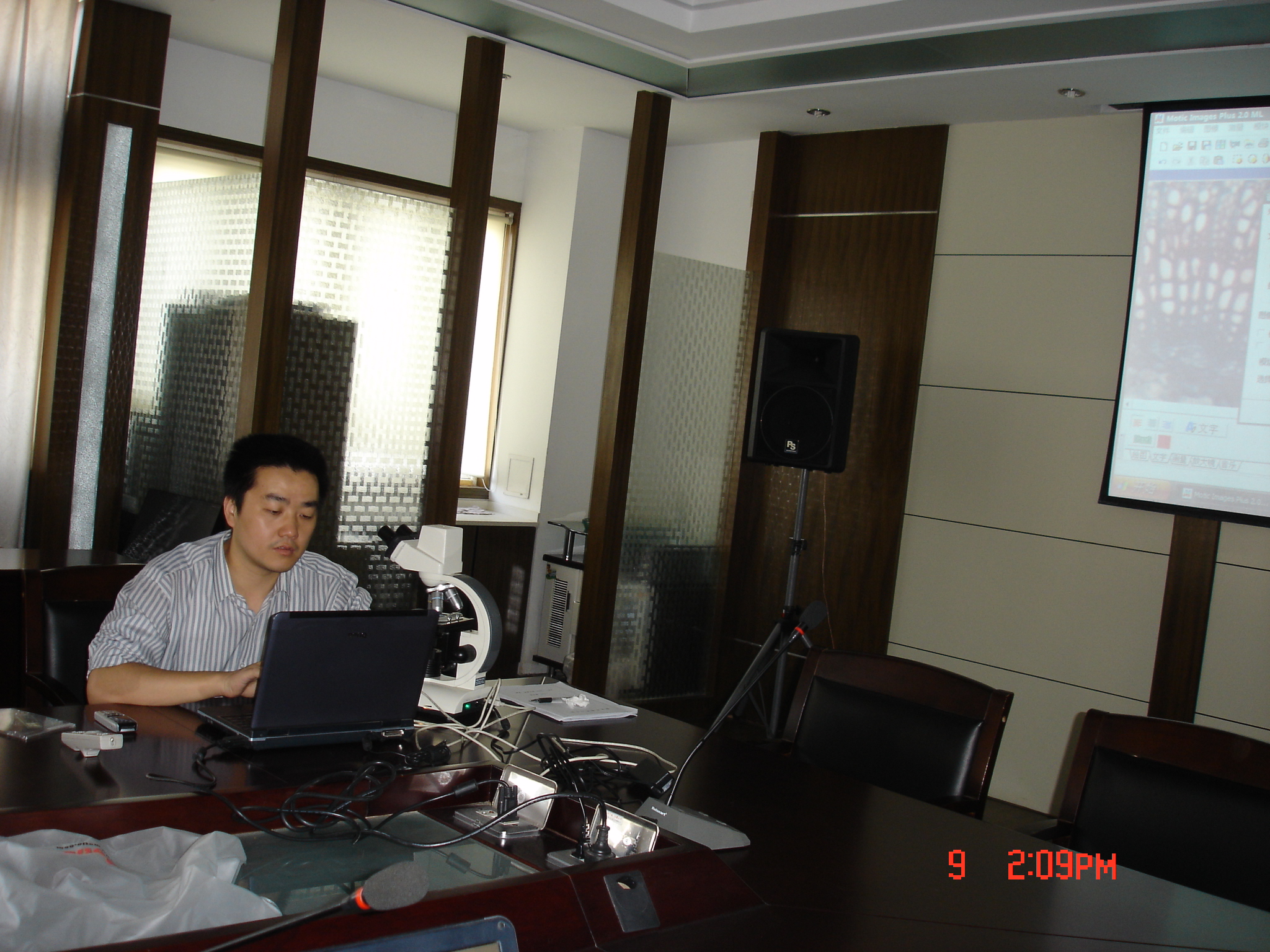 (知道不?这个就叫数码显微镜!乖乖隆的东!先进!不好意思,听说俺这里的一台,中华中学已经配备到每张实验桌上都有了一台。老师坐在前面就能看见下面每个学生显微镜下看到的是什么,老师~~~那个爽! 名校!真牛!)