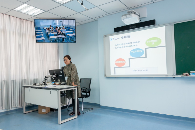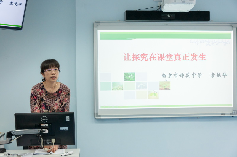 活动第二项首先由彭汀汀老师作讲座介绍了集体课题“在探究活动中培养学生的思维”的新进展;随后工作室特邀专家钟英中学袁艳华老师进行指导,袁老师指出“让探究在课堂真正发生”,她结合了大量正反例从“是否有效引导学生提出问题、是否有效发展学生的猜想与假设能力”等几个角度进行阐述,深入浅出,使大家对探究性教学有了更深的理解。