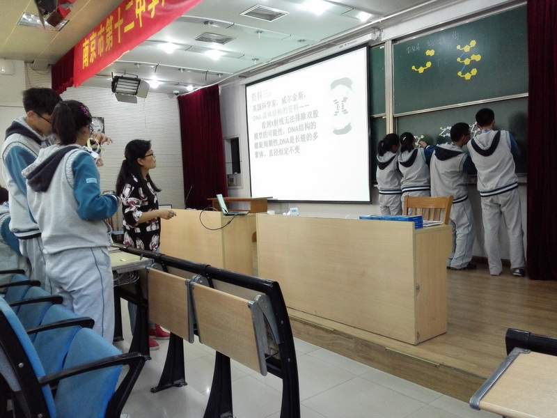 12中的李文良老师开设了《微生物的实验室培养——实验操作》,实验就得动手做才能有所得有所体会,李老师准备充分,讲解详略得当,另外12中的小班化教学颇具优势。我校张小明老师开设了《DNA分子的结构》,结合模型建构重现了科学史,逻辑严密,学生在体验中获得能力。最后鼓楼区教研员叶琦老师进行讲座《让高中生物课堂精彩起来》,她强调课堂的体验式学习、师生互动和课堂生成,教师应做有心人,展开教学研究。