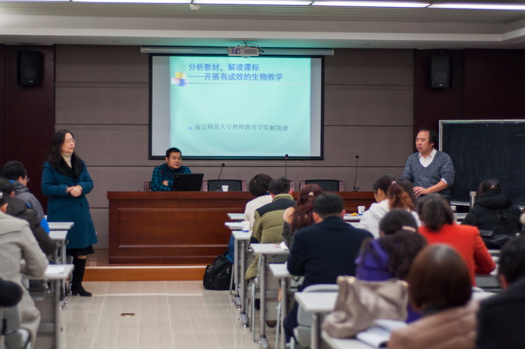 南师大解老师则深入分析了中学生物课堂教学,他结合近几年江苏省优质课评比的课题进行了课例分析,尤其强调通过解读课标、分析教材,开展有成效的生物教学。解老师的讲解生动有趣,总有点睛之笔。