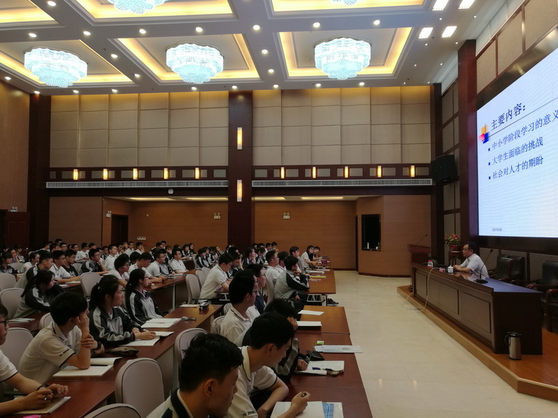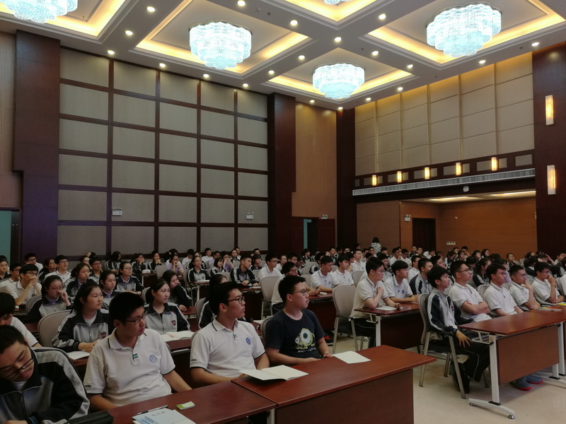 吴教授首先讲解了他对高中生物学习的几个观点,并对大家的高考解题思路进行了指导;随后他结合大学的挑战对同学们提出了几点希望:要有责任有担当,学会自我管理,培养兴趣,学会团队合作;最后他更是从社会对人才的要求这个角度提出了当代青年要有面对世界的勇气与自信,要敢于创新,不断挑战自我。