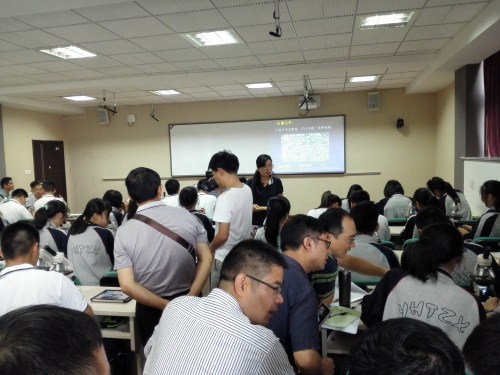 本次活动,雨花台中学张晓明老师先开设了一节题为“生命活动的基本单位----细胞”的研究课。随后,雨花台中学蒋勇老师也开设了题为“植物生命活动的调节”的研究课。两位老师都将“微课程”微妙地嵌入到了教学中,自然流畅,还大大地提高了教学效率,让听课教师们都受益匪浅。然后,金陵中学的教授级教师王苏豫老师进行了题为“为续写科学史的教学----细胞学说及生长素发现的教学”的互动式评课。评课过程中,王老师提供了评课标准,参加听课的老师们从学习目标、学习方式,教学目标、教学方式等评课角度畅所欲言,给我们展示了一种全新的评课方式。下午,周茜校长做了“互联网+高中生物教学”的讲座,让我们对“微课程”有了更深层次的了解。