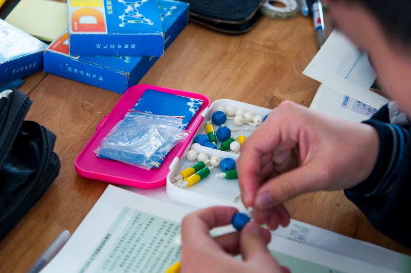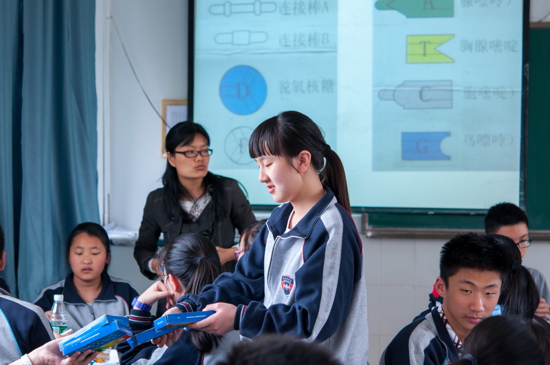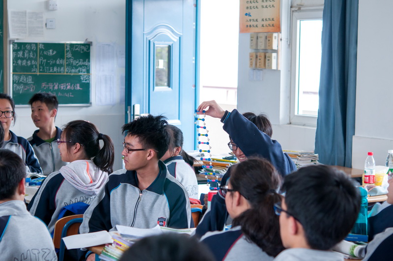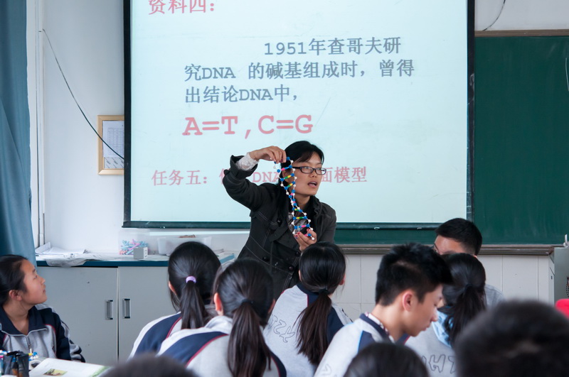 2016年4月12日下午第一节课张小明老师在高一(6)开课,课题为《DNA分子的结构》,我校高中生物教研组和板桥中学生物教研组共同研课。
