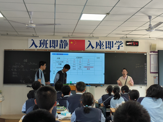 细胞中每时每刻都进行着许多化学反应,统称为细胞代谢。韩冰雪老师通过视频直入主题,细胞代谢也会产生对细胞有害的物质,如过氧化氢。幸而细胞中含有过氧化氢酶,能将过氧化氢分解,变成氧和水。新鲜肝脏中有较多的过氧化氢酶。引出酶的作用有什么特点?通过比较过氧化氢在不同条件下分解的快慢,了解过氧化氢酶的作用。在课堂中虽然没有分组实验,只做了演示实验但是由于提前录制视频,学生还是能很清晰的观察到实验现象。最后通过动画模拟和曲线分析,理解酶作用的本质——降低反应所需的活化能。再通过自主阅读课本,总结关于酶本质的探索过程。课堂最后也是关注实际,介绍了酶和生活的联系。