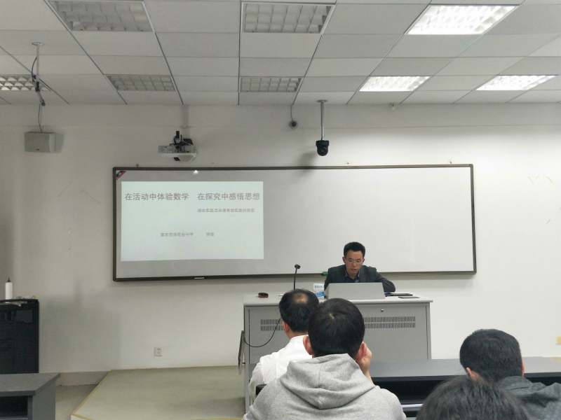 2018年4月11日星期三下午,在我校开展的科研实践周活动中,数学课题组积极参与活动并展示了高质量的教研成果。本次活动首先由数学课题组梁海波老师开设了一节《图形的分割》综合与实践活动课,课堂气氛活跃、精彩纷呈,受到了老师们的一致好评!接着由数学课题组徐俊老师开设了《综合实践活动课常态化研究》的讲座,徐老师详细的展示了数学课题组的研究成果以及发展方向,内容扎实精彩。活动的最后由江苏省教师培训中心特级教师陈玉乔主任给全体老师们做了关于如何开展课题研究的讲座,讲座内容精彩纷呈,参与的老师们均有很大的收获!