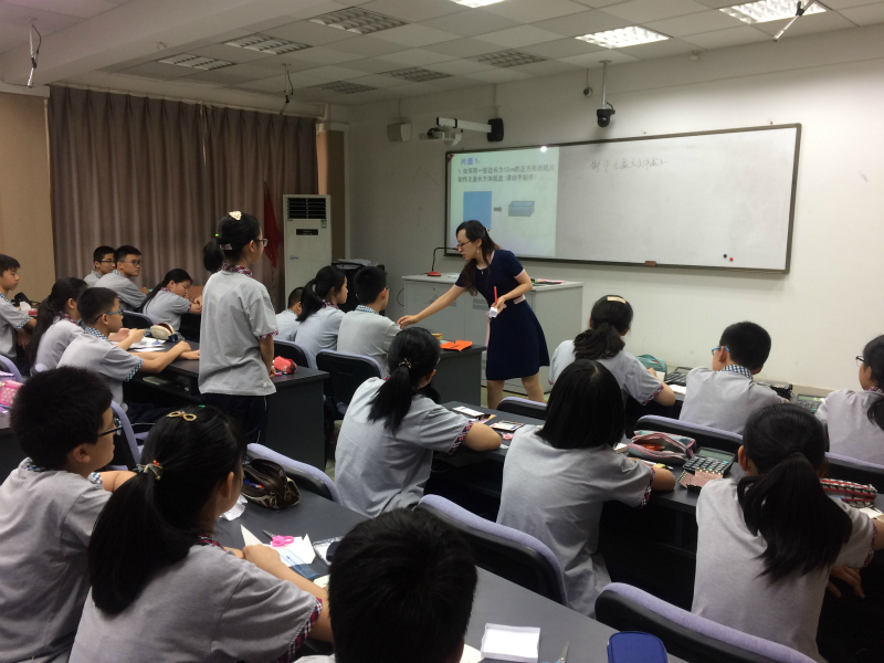 本次活动先由赵海荣老师开设了一节课题研究课,题目为《制作无盖长方体盒子》,赵老师开篇以实验操作题目引入,激发了学生兴趣,接着通过学生自主探究、合作交流和上台展示等方式成功的完成了本节课的教学内容,使学生的数学思维得到了充分的发展.整节课课堂气氛活跃,精彩纷呈,受到听课老师的一致好评.接着,由安勇老师带领教研组老师对本节课进行了深入的研讨和交流.