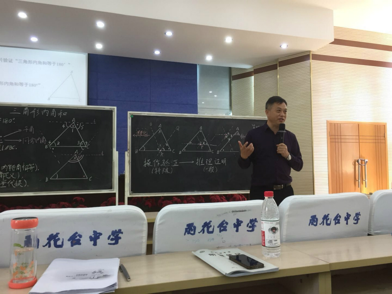 2018年4月10日下午,雨花台区数学教研活动在我校初中部顺利举行。本次活动由雨花区数学教研员刘春书老师主持,雨花区全体初中数学教师参与观摩了本次活动。本次活动首先由徐俊教师为大家展示了一节《三角形内角和》活动课。徐俊老师的课堂精彩纷呈,气氛热烈。接着,由沈丽老师为大家作了《结合课例谈几何教学的思考》讲座,沈老师以丰富的教学经验从多方面阐述了对几何教学的思考,观摩老师们得到了很大的启发。最后,由特级教师卜以楼老师为本次活动做了总结并给大家作了《几何教学的关键点》讲座。本次活动内容丰富,过程精彩,参加活动的老师们均有很大的收获!