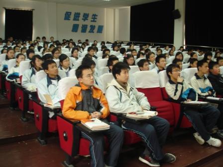 2009年4月1日我校初三年级部在二楼学术报告厅组织学生聆听了一场中考前的有关数学思想方法的专题讲座。本次讲座由初三年级数学备课组长安勇老师主讲,安勇老师以其丰富的教学经验,诙谐的教学方式让整个会场上的同学们都充满了兴趣、聚精会神。同学们在听讲中逐步提升了数学能力,也正体现了本次数学文化周“感悟数学思想”的主题。