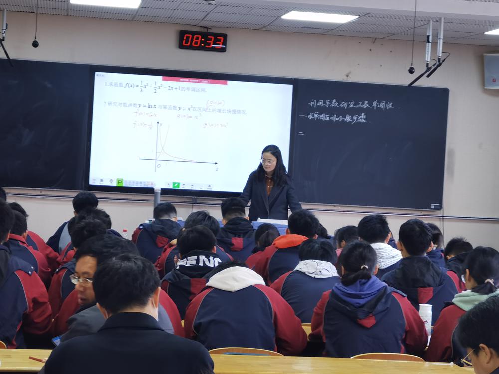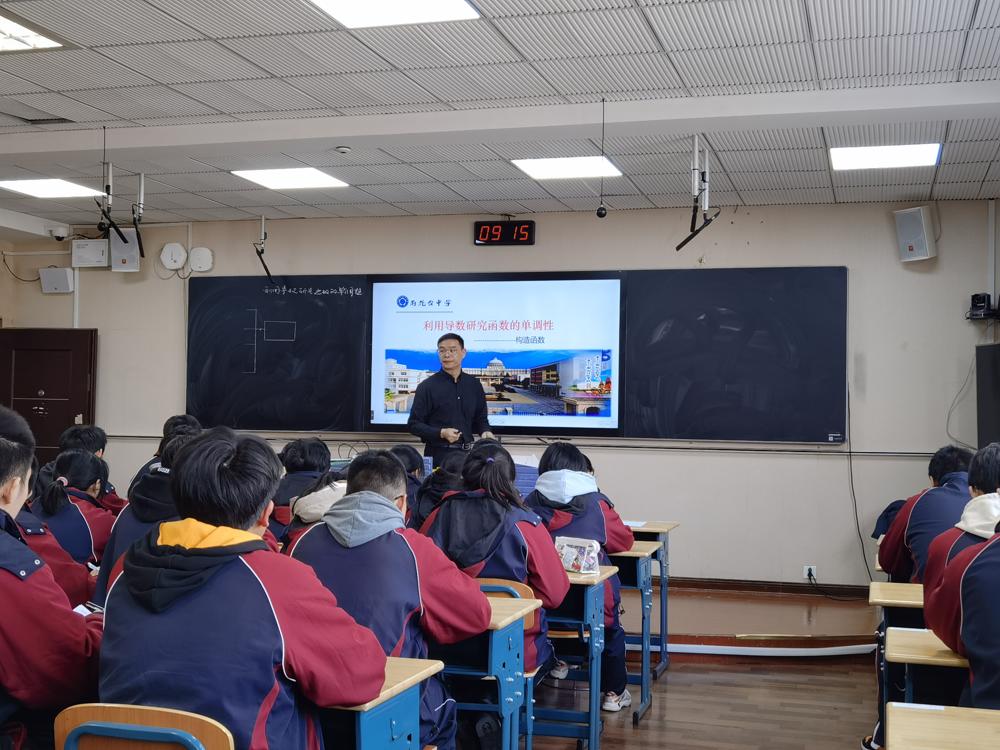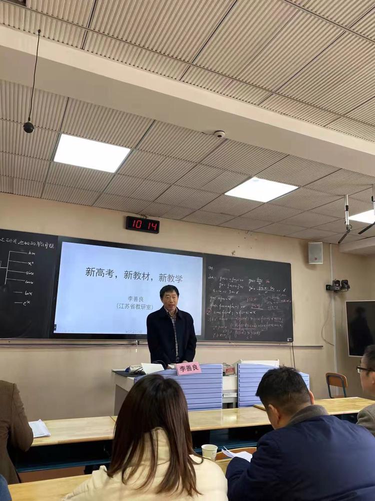 12月9日,雨花台中学开放日,海安中学王红老师和雨中季志国老师分别开设了高三数学一轮复习课《利用导数研究函数的单调性》,课后省教研室李善良博士对两节课作了精彩点评。李博士称两节课都非常精彩。王红老师的课有清晰的回归教材、知识梳理、典型例题、反馈训练等版块,注重学生在知识、方法、运用、综合等各个层面的提升。季志国老师的课针对一类问题,通过例题及多个变式打通学生的思维,选题恰好到位,教学中非常注重展示学生思维过程。李博士结合两节课给我们作了题为《新高考、新教材、新教学》的讲座,开阔了我们的眼界,启发了我们的思考,对我们进一步研究新教材研究新高考有很大的意义。