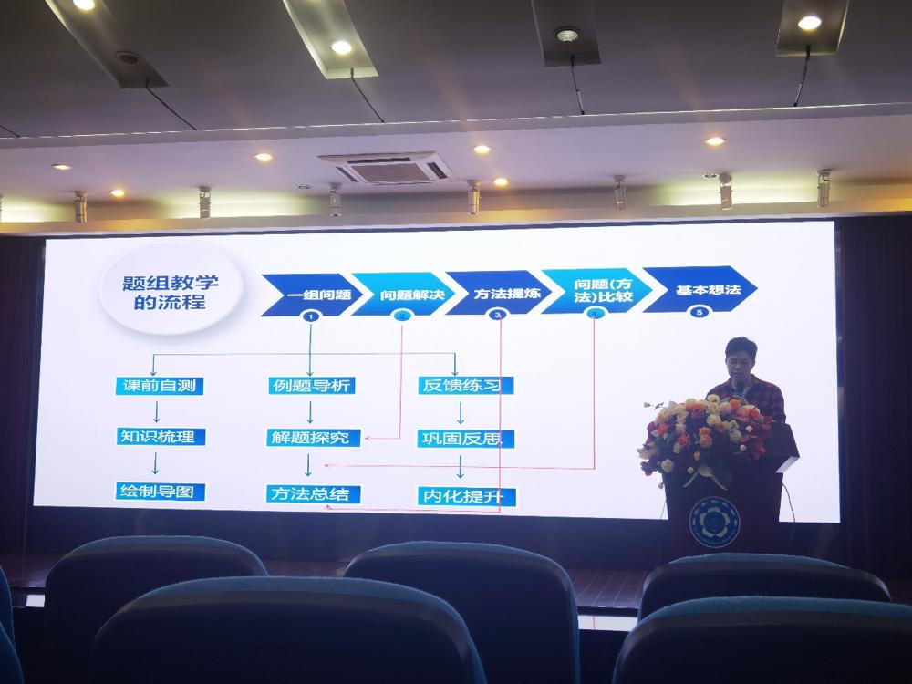 南京市金陵中学王友伟老师开设专题讲座《题组为基,学生为主,素养为向——一轮复习教学模式的探究与思考》,讲座结合第二节课,强调一轮复习不是简单地回顾知识,也不是简单地教学生解题,更重要的是带着学生将原有的知识与技能重组、输出,将知识体系化,方法程序化。
