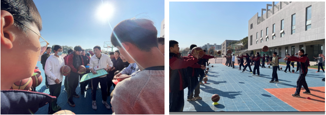 教学中花季老师动作示范优美、准确;语言具有亲和力,教学环节组织有序,练习形式新颖且能够充分强化传接球技术的练习强度和密度。对于借班上课,能很好地发挥小组长的带动作用,是每项练习的有序进行的有效保障,这也充分体现了教师把控课堂的能力与教育智慧。