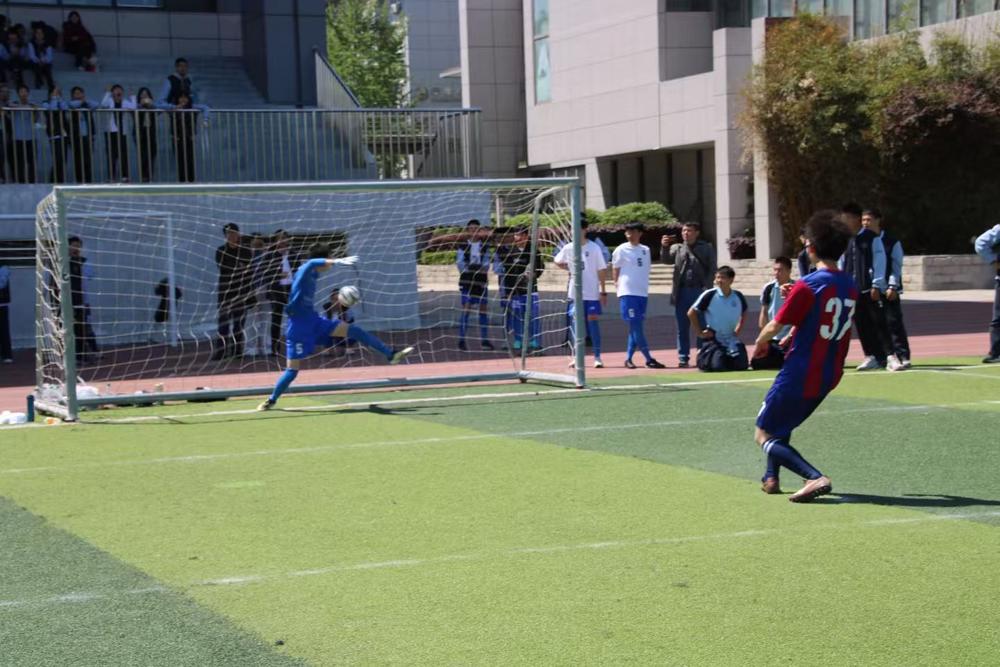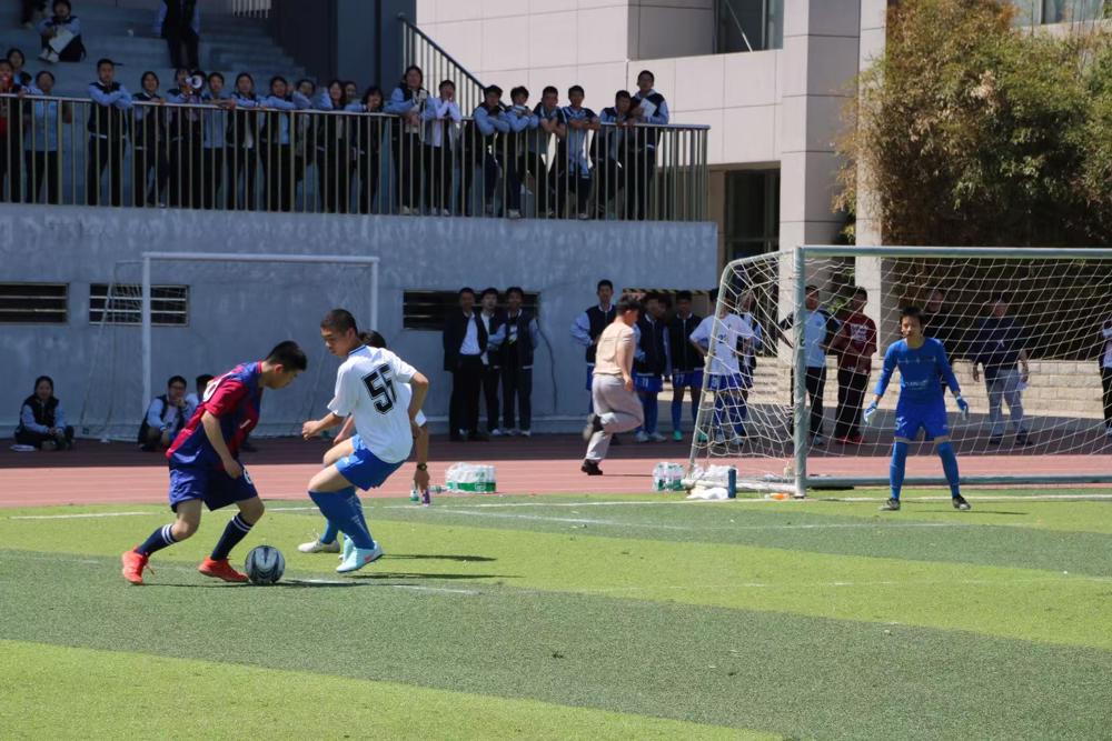 揭幕战由高一5班对阵高一2班,比赛上半场高一5班占据优势,创造了多次得分良机,遗憾的是没有获得进球,下半场异边再战,高一2班加强了攻势,也获得了几次得分良机,遗憾的是距进球总是失之毫厘,双方不断攻守交替,在最后五分钟激烈拼抢,遗憾的是双方均未取得进球,在随后进行的点球决胜中,高一2班守门员在第二轮成功扑出高一5班罚球队员的点球,最终高一2 班以点球3:2的结果获得本场比赛的胜利,顺利进入下一轮,高一5班遗憾离场。