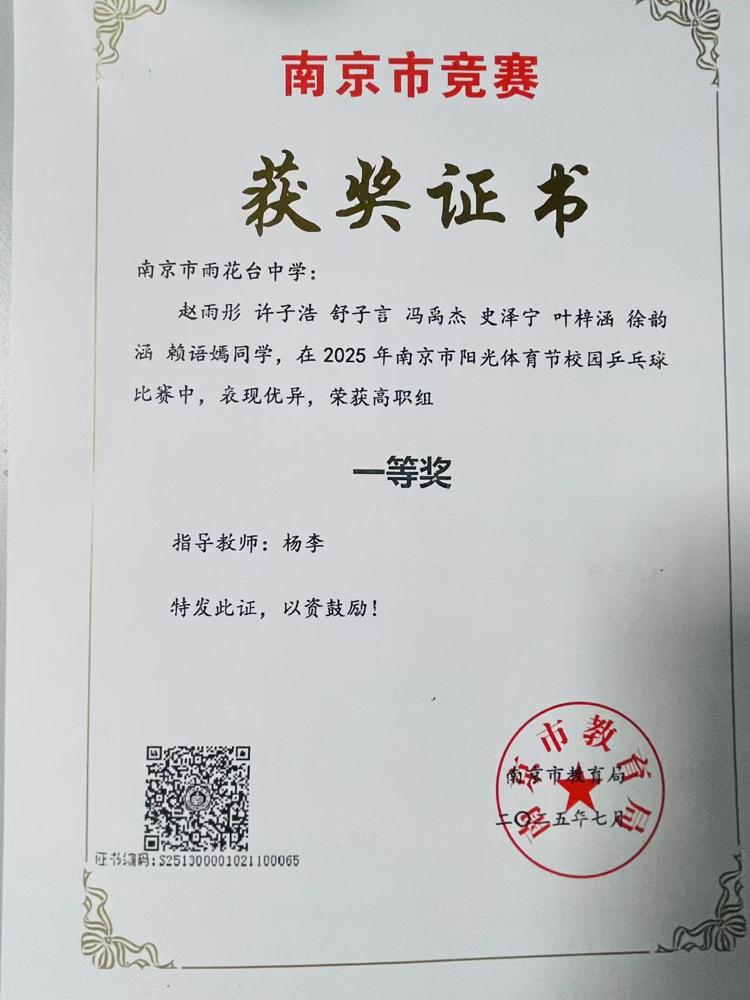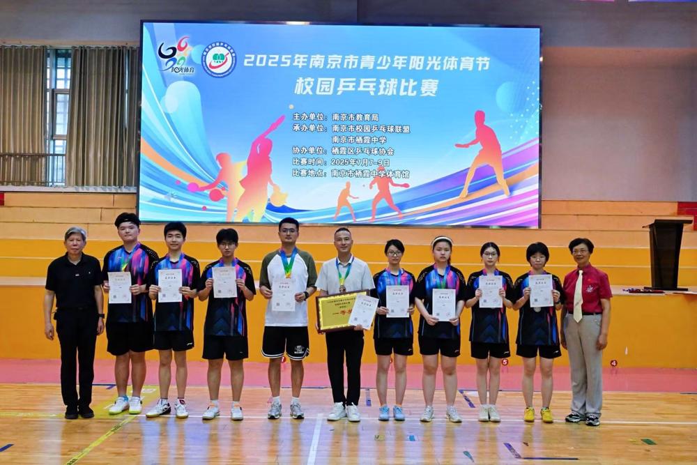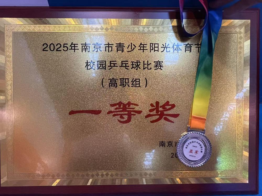雨花台中学在2025年南京市阳光体育节校园乒乓球比赛中荣获高职组一等奖