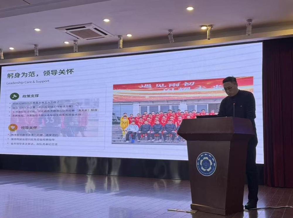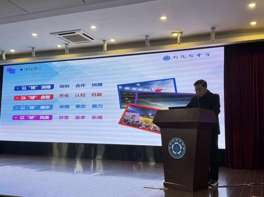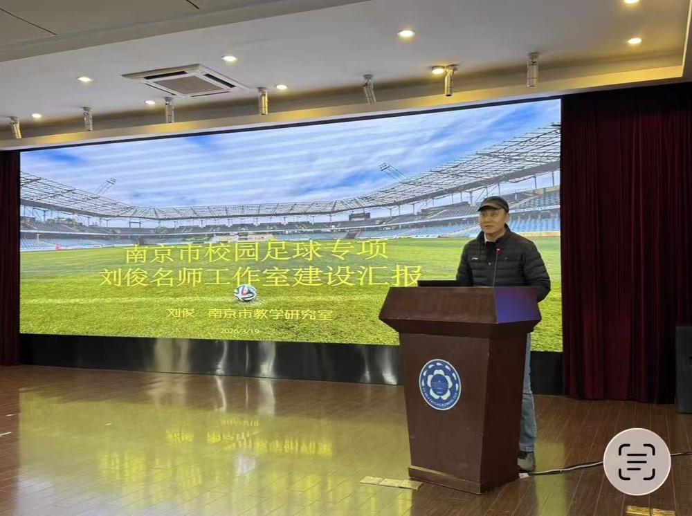 好的课堂践于外,深度教研修于内。在校园足球工作经验分享环节,雨花台初级中学杨波副校长、雨花台中学王波副校长分别分享了校园足球建设与人才培养经验,充分展示南京市校园足球冠军学校的特色做法与育人成果。南京市校园足球教育发展中心主任杨洲洲带来的《数智优化管理 “班超”燃动校园》专题分享,为校园足球发展提供新思路。一枝独秀不是春,百花齐放春满园,名师工作室是学科引领、专业共进的重要平台,南京市教研员刘俊老师作为南京市(校园足球专项)刘俊名师工作室的主持人介绍了工作室的建设成果与发展规划,工作室以“小足球、大教育,健康第一、全面育人”为主张,整合教学、科研、行政多方力量,构建校园足球课程体系,力争打造区域优秀校园足球研究团队。