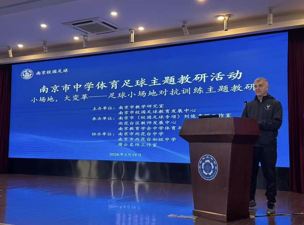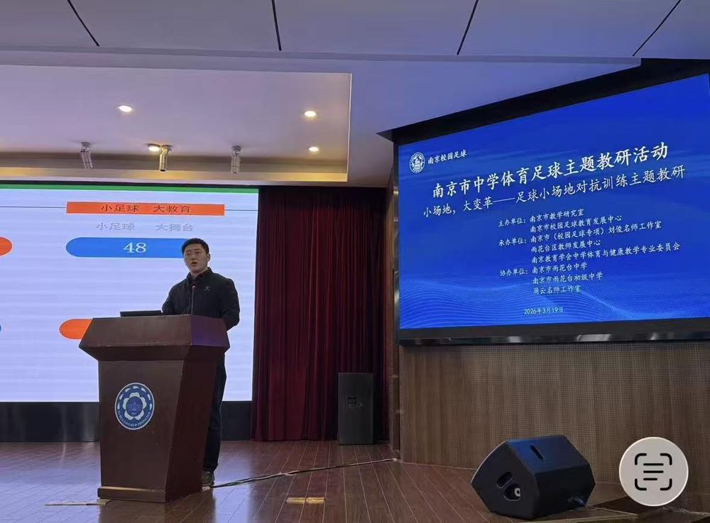 2026年3月19日,南京市中学体育足球主题教研活动在我校举行。该活动由南京市教学研究室、南京市校园足球教育发展中心主办;南京市(校园足球专项)刘俊名师工作室、雨花台区教师发展中心、南京教育学会中学体育与健康教学专业委员会承办;南京市雨花台中学、南京市雨花台初级中学、周云名师工作室等协办。