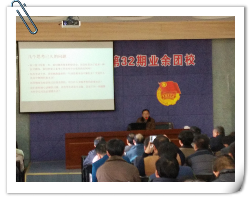 活动第二项是几位特级教师和教研员开设讲座,具体内容是:盛局长开设题为《又一年的高三物理复习备考》的讲座,连云港新海中学王承金老师开设题为《谈高三物理复习的“三字经 ”》的讲座,扬州新华中学鲁信老师开设题为《谈高三的物理复习》的讲座,南京十三中魏昕老师开设题为《优化复习课设计,促进学生自主解决问题能力的提升》的讲座,南京市物理教研员杨震云老师开设题为《把握高三复习备考的变与不变》讲座。