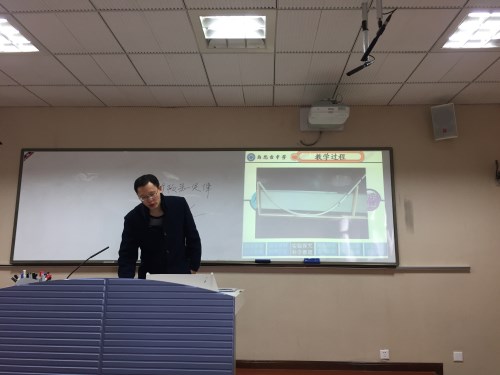 比赛中,有的选手通过ppt向大家展示自己的设计理念,有的选手通过自己所设计的图形等方式,从说教材、教法、教学手段、学法、教学过程及板书等方面对“牛顿第一定律”的教学进行了详细阐述。在教材和教法处理上,参赛教师充分考虑学生学情,整合教材,设计了不同的教学方法。在教学过程设计上,各位教师利用多种教学模式,层层深入,解决问题,充分展示了自己独到的教学设计和教学风格,给大家呈现了一个个充满活力和魅力的课堂。得到在场老师和评委的阵阵掌声。