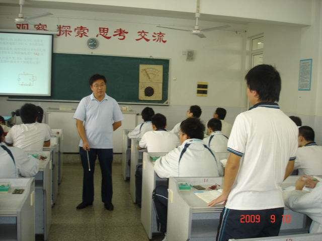 2009年9月11日,我校开展的每日一课活动由物理教研组长王波老师在高二(5)班开设《多用电表》一课,期间参与听课老师人数众多。王老师以其清晰而深入的教学设计,流畅而严谨的教学风格,展现了区学科带头人的名师风采。正所谓入乎其内,出乎其外。受到了盛校长和全组老师的高度评价。