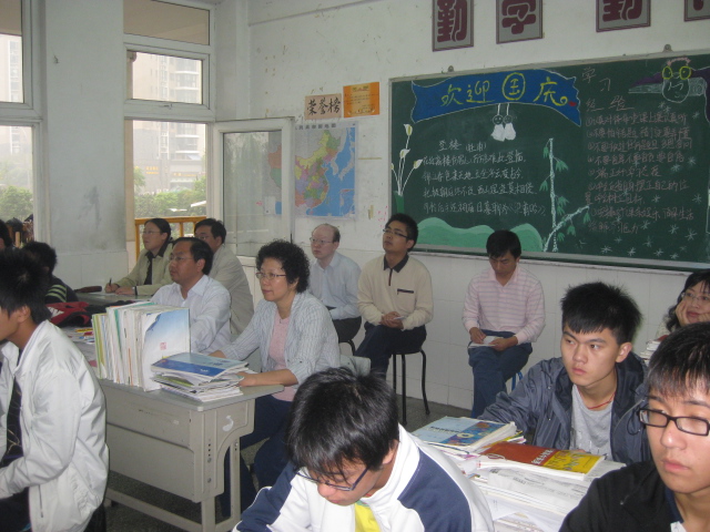 2008年10月10日上午,为了贯彻落实青年教师教学大赛的预赛,更是为了加快青年教师的成长,我校物理教研组在盛云生副校长的指导下,教研组长王波老师精心组织安排了四位青年教师开设了四节不同类型的课型,朱怀源副书记、盛云生副校长百忙之中带领全组老师参加听课、评课,反响热烈。朱书记高度评价了四位老师的优质课,同时殷切希望我们的青年教师尽快成长为教学骨干,担负起学校向更高层次名校腾飞的重任;盛校长高度评价了这次教研活动,他认为四位青年教师一上午开设四节不同类型的课型,虽然强度较大,但所有的老师都能认真听课、记录,积极讨论,这种教研氛围既有助于开课教师成长,四种不同类型的课同时展开也是一次难得的学习机会,盛校长还高度评价了四位开课老师做到了精心准备,迎难而上,上课精彩纷呈,各具特色,展示了我组老师扎实的基本功和高度负责的态度,对教研组如此负责的认真落实教学大赛预赛工作给予了肯定。